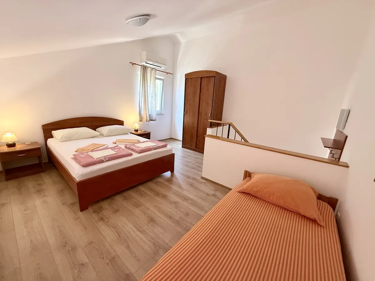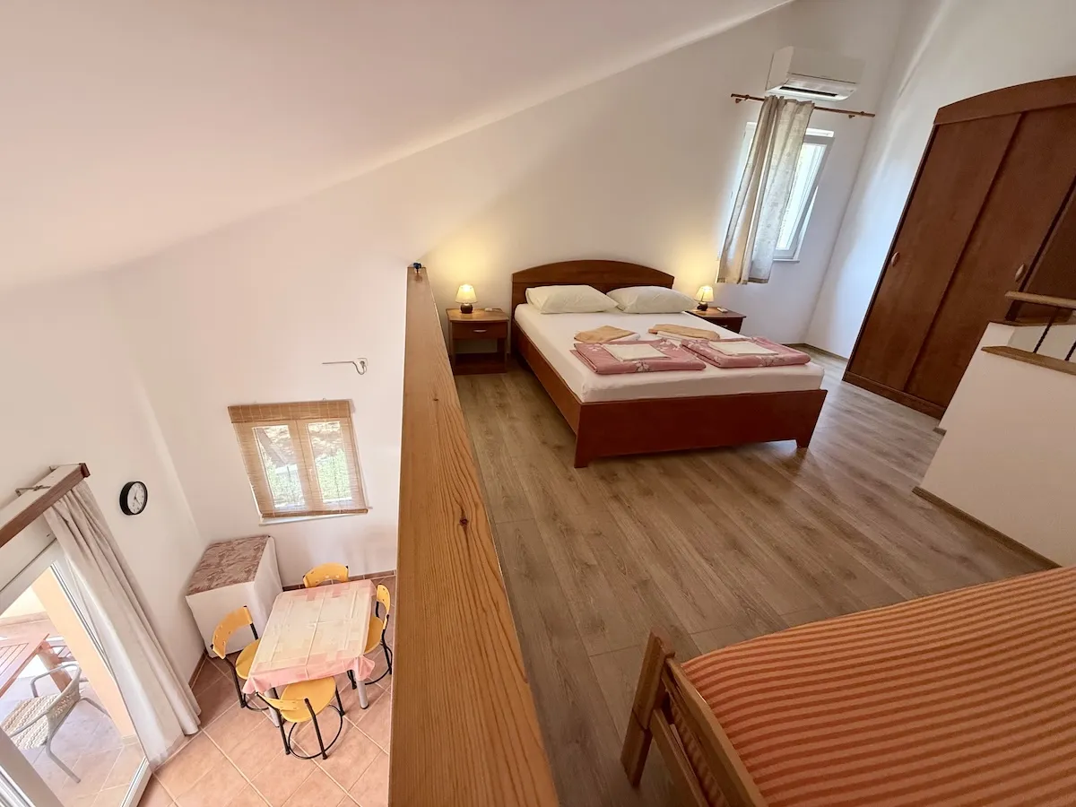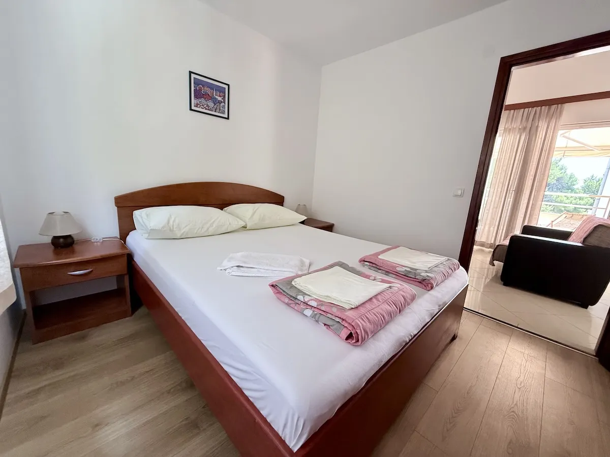 Our largest apartment, B features two separate bedrooms and a grand balcony...